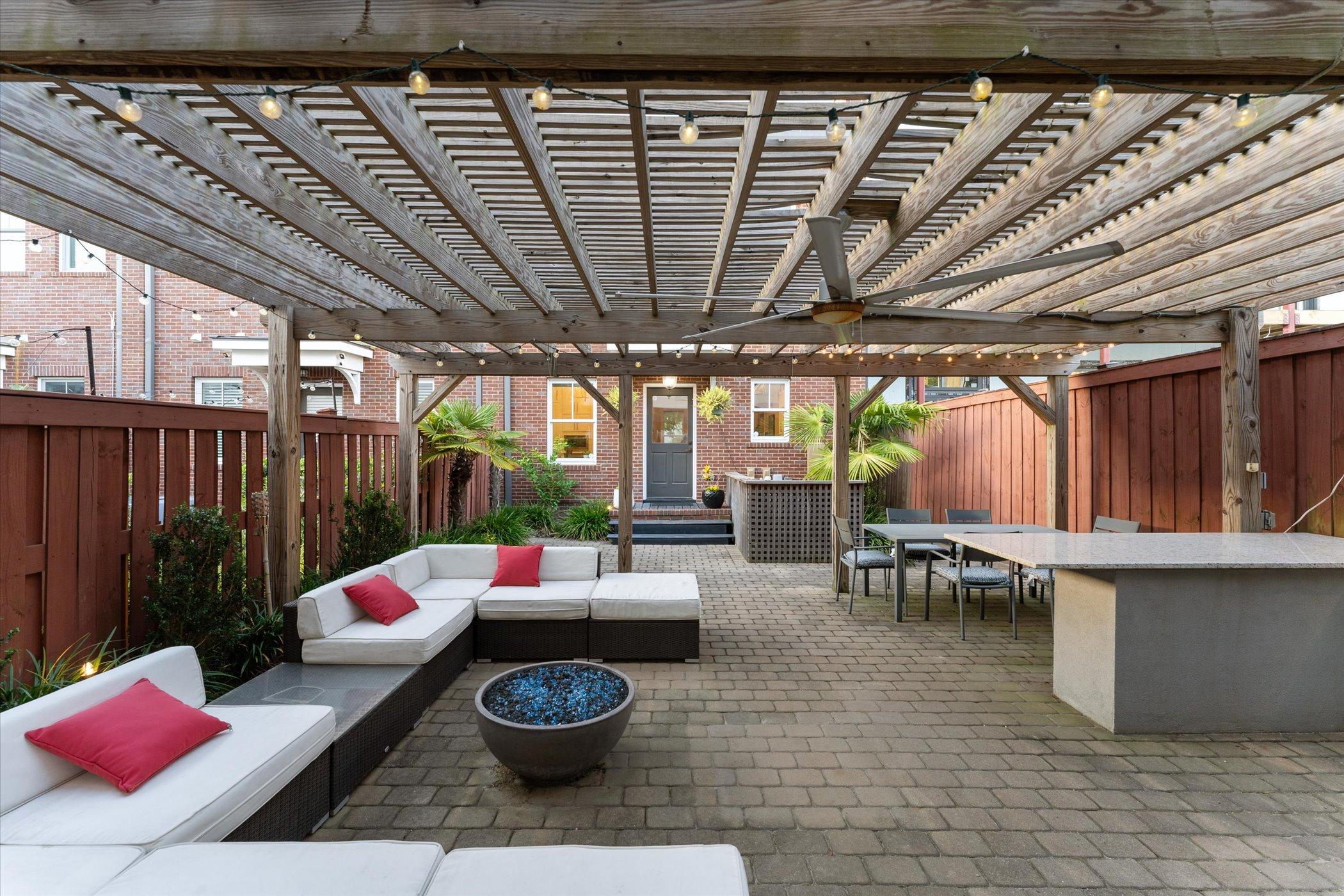 Only steps to Forsyth Park's fountain, playground, fort, restaurant & amphitheater, this quaint home is tucked away in Savannah's Landmark Historic District. Newer construction with unique two story home, large courtyard, two car garage and carriage house. The property is zoned D-C, has a non-owner occupied STVR permit and both main house and carriage house can be utilized by the owner or as long term or short term rental. The carriage house is currently used as an STVR with income of over $30k a year. The main house has a light/ open floor plan with kitchen, dining, living room and powder room on the first floor. Upstairs includes three bedrooms with three ensuite baths. The carriage house includes an additional bed & bath with kitchen/ living and laundry. A short walk to city squares, theaters and restaurants means you don't need a car but there are two garage spaces nonetheless! Few homes offer a courtyard with this much space for outdoor cooking & dining, pets and entertainment.