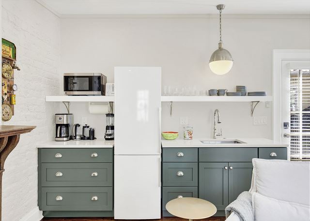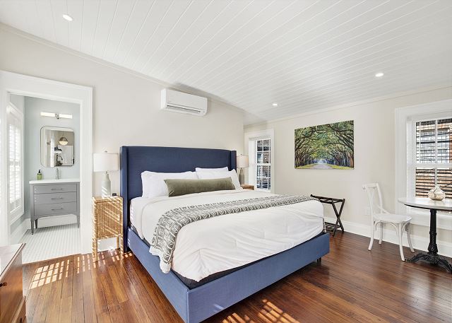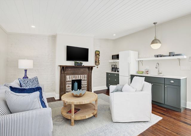 This charming unit features a comfortable sleeping area, thoughtfully designed living space, and a well-equipped kitchen—ideal for short or extended stays. Natural light, tasteful décor, and garden views create a warm and inviting atmosphere that reflects Savannah’s relaxed elegance.